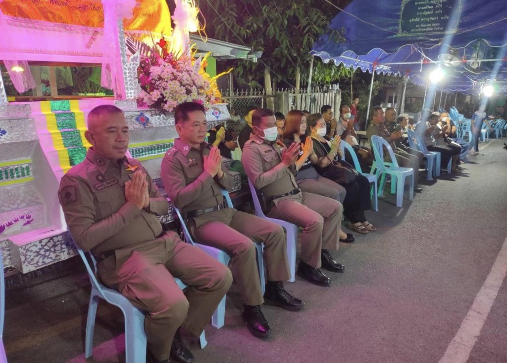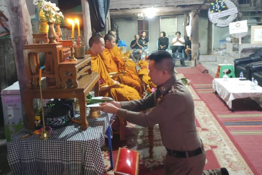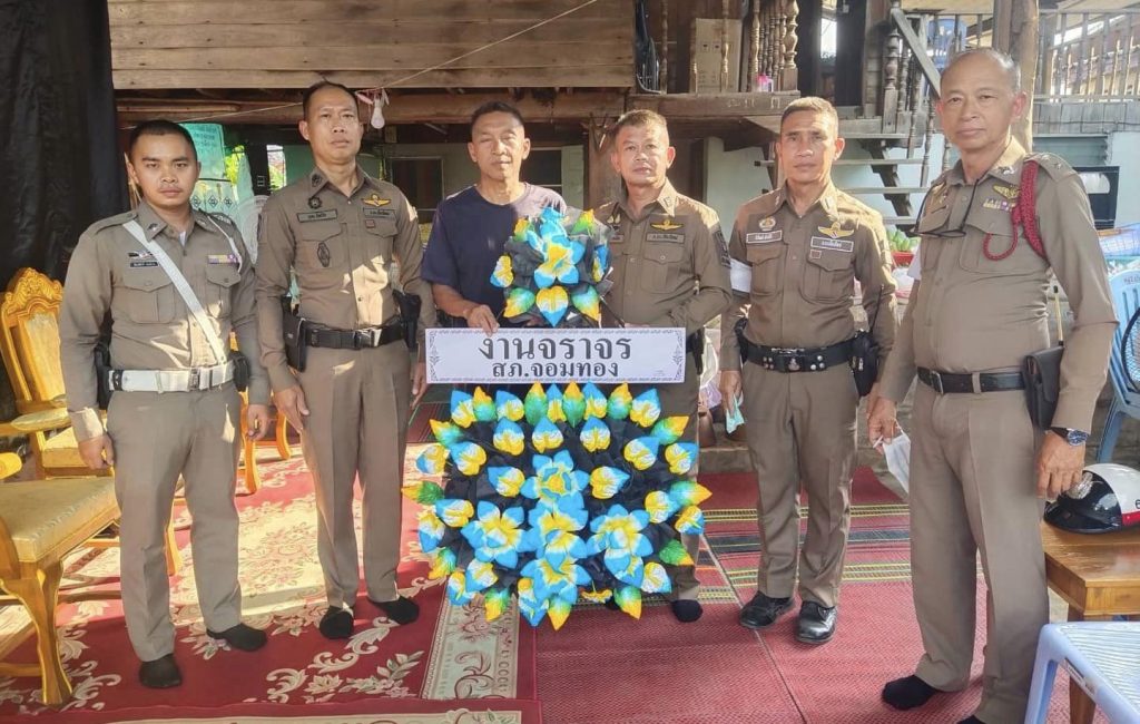 พ.ต.อ.สิโณทัย ลิลิตธรรม ผกก.สภ.จอมทอง พร้อมข้าราชการตำรวจในสังกัด สภ.จอมทอง ร่วมเป็นเจ้าภาพสวดอภิธรรม เนื่องในพิธีบำเพ็ญกุศลศพ คุณแม่บัวจันทร์ อินต๊ะยศ มารดาของ ร.ต.ท.สุชาติ อินต๊ะยศ รอง สว.(ป.)สภ.จอมทอง ณ บ้านเลขที่ 3 ม.2 ต.บ้านหลวง อ.จอมทอง จ.เชียงใหม่ พร้อมนี้ ได้มอบเงินสวัสดิการข้าราชการตำรวจ สภ.จอมทอง ให้กับ ร.ต.ท.สุชาติ อินต๊ะยศ รอง สว(ป.) สภ.จอมทอง จว.เชียงใหม่