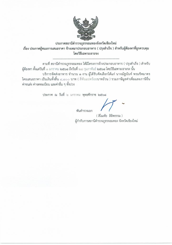 จ้างเหมาประกอบอาหาร (ปรุงสำเร็จ) สำหรับผู้ต้องหาที่ถูกควบคุม โดยวิธีเฉพาะเจาะจง