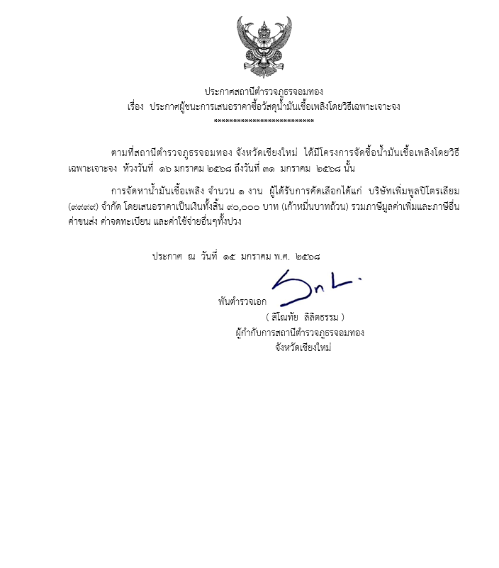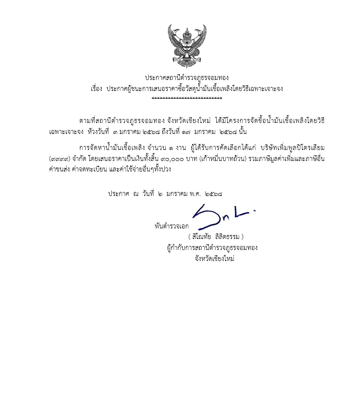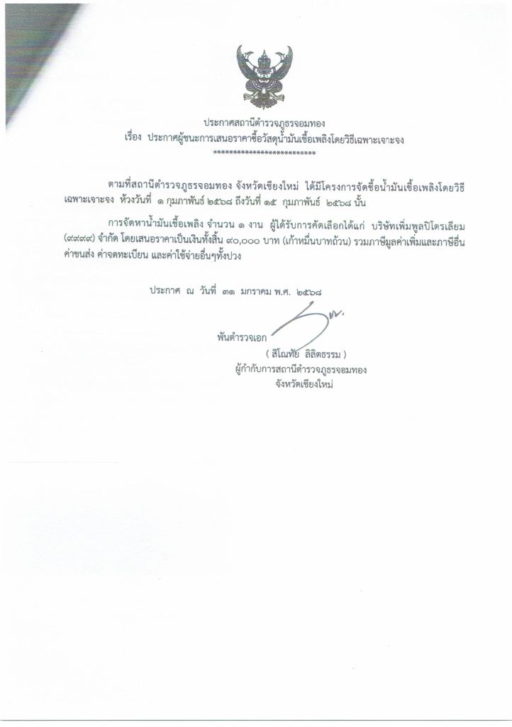 จัดซื้อวัสดุน้ำมันเชื้อเพลิง โดยวิธีเฉพาะเจาะจง