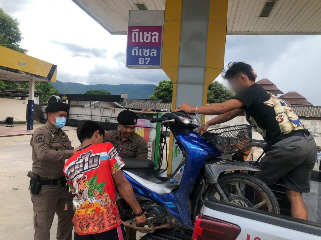 วันที่ 8 ต.ค. 2566 เวลา 14.45น.ร.ต.อ.สมขาย ลิดี เจ้าหน้าที่ตำรวจสายตรวจเวรจราจร ออกปฏิบัติหน้าที่ ให้ความช่วยเหลือรถจักรยานยนต์ประชาชนน้ำมันหมด ที่บริเวณกลางดอยโมคคัลลาน ถนนเชียงใหม่-ฮอด ม.3 ต.สบเตี๊ยะ อ.จอมทอง จ.เชียงใหม่ โดยได้นำรถจักรยานยนต์บรรทุกใส่รถยนต์สายตรวจ มาส่งที่ปั๊มน้ำมัน เนื่องจากระยะทางไกล