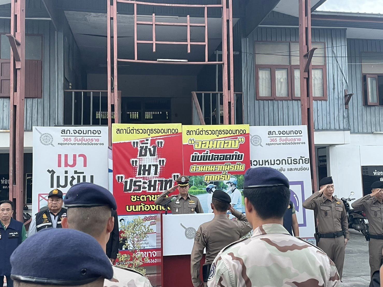 สภ.จอมทอง จว.เชียงใหม่ อำนวยการโดย พ.ต.อ.ปรัชญา ทิศลา ผู้กำกับการ สภ.จอมทอง พ.ต.ท.ธนากร คำวะรัตน์ รอ