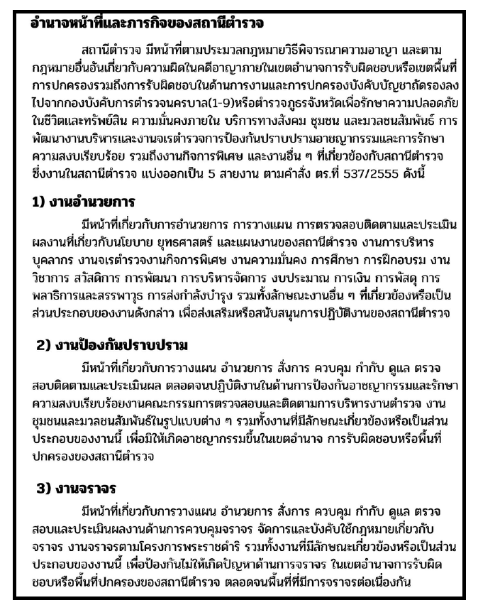 เรื่องการกำหนดอำนาจหน้าที่ของตำแหน่งในสถานีตำรวจ