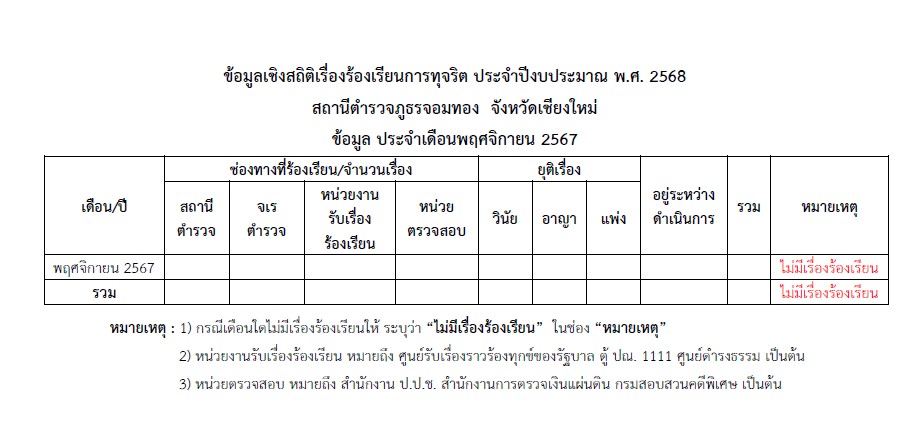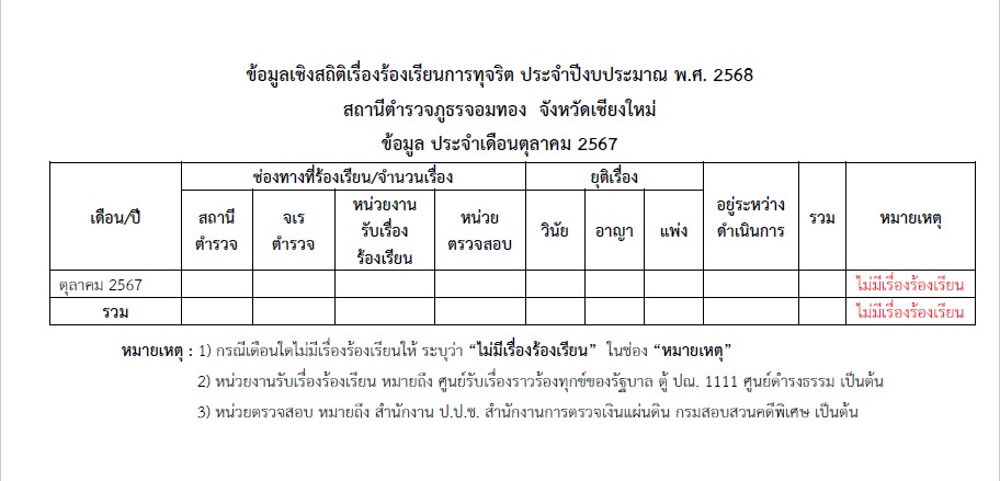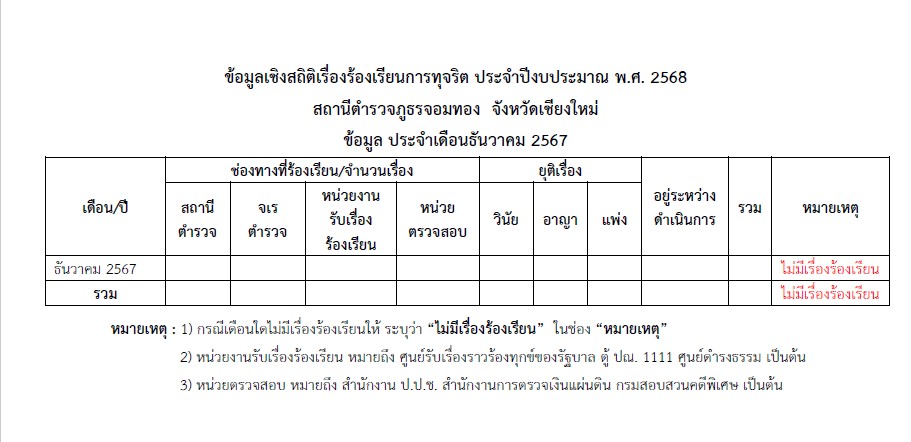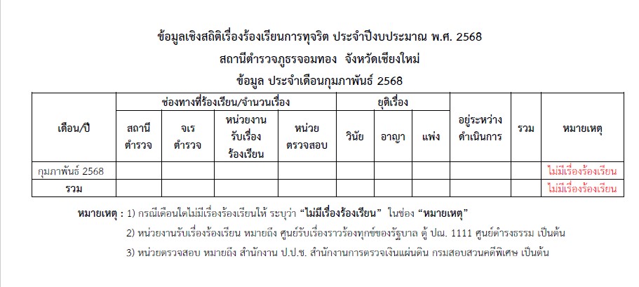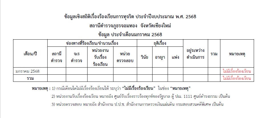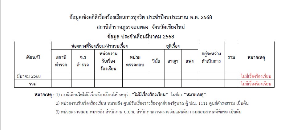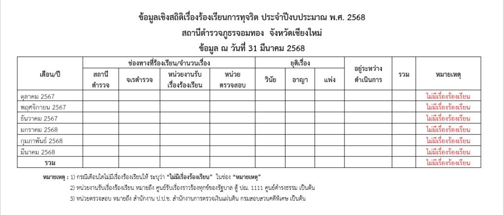 ข้อมูลสถิติเรื่องร้องเรียนการทุจริตและประพฤติมิชอบของเจ้าหน้าที่ของสถานีตำรวจภูธรจอมทอง